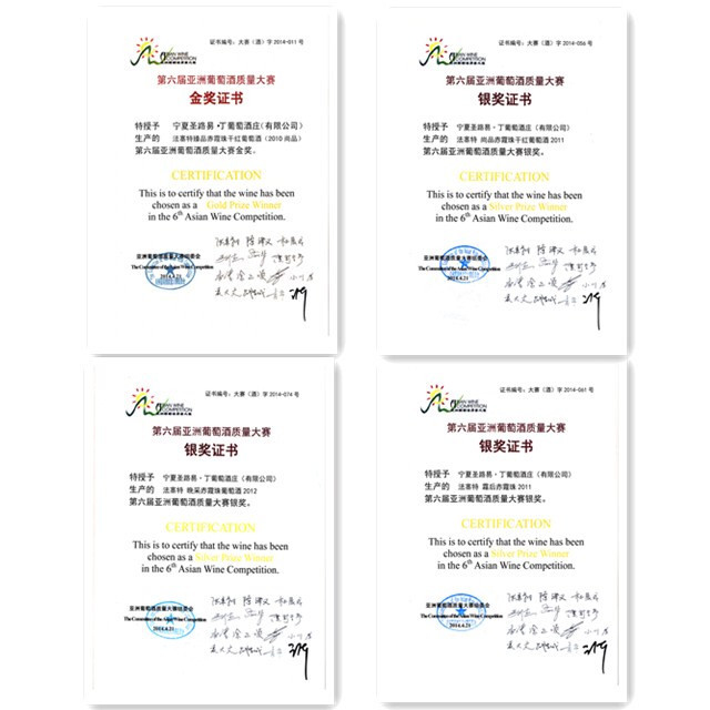 2014年第六届亚洲葡萄酒大赛上,公司参赛的四款产品均获大奖