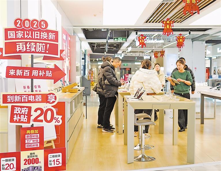 2月5日,银川新百电器有限公司东方红店,消费者在选购数码产品。在以旧换新家电补贴活动带动下,家电消费市场火热。 宁夏日报报业集团全媒体记者 马赛尔 乔新宇 摄