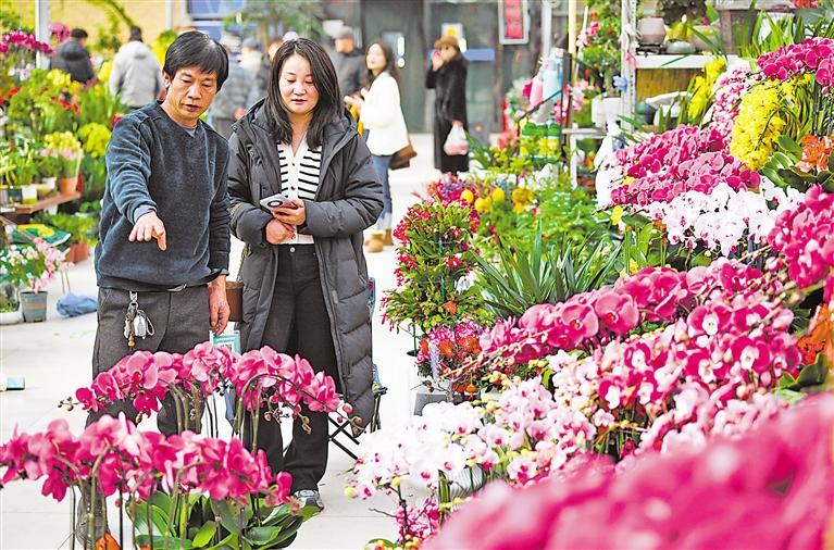 1月27日,人们在宁夏和晟鲜花港挑选花卉。 记者 马楠 马赛尔 摄