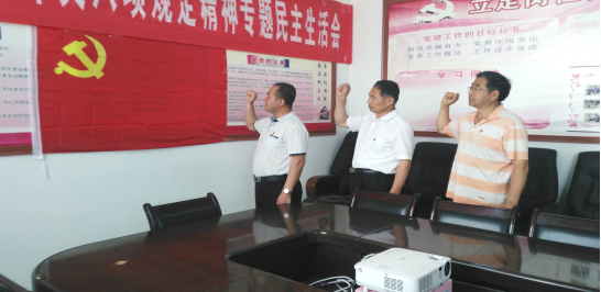 农技中心党支部开展了“攻坚克难、持续发力、加快农业项目实施进度”主题党日活动。宣读了农牧局关于同意何建国同志转为预备党员的文件,由老党员带领进行了入党宣誓;以《不忘初心 做合格党员》为题讲授党课;4名党员干部就如何攻坚克难、持续发力、加快农业项目实施进度交流发言。会议现场进行《监察法》随堂测试,全体党员参加了测试。同时就成立党小组事宜,进行了讨论交流。