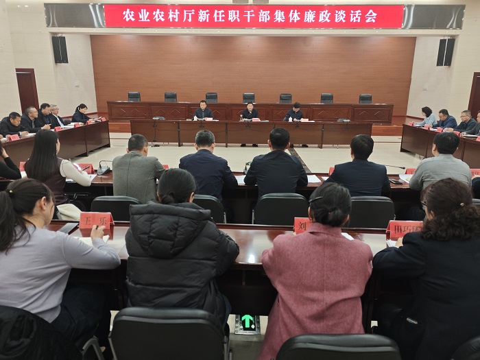 2月12日,自治区农业农村厅召开新任职干部集体廉政谈话会,为新任职干部上好任前“第一课”,把好履职“第一关”。自治区农业农村厅党组书记、厅长,乡村振兴局局长,党委农办主任王建主持会议并讲话;厅党组成员、驻厅纪检监察组组长冯永东对新任职干部廉洁从政提出要求。
