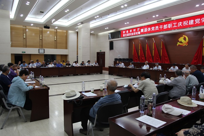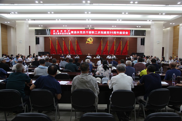 6月30日下午,农业农村厅与贺兰县农业农村局召开离退休党员干部职工庆祝建党99周年座谈会,有离退休党员干部132人参加。会议传达学习了自治区党委老干部局、离工委《关于认真学习宣传贯彻习近平总书记视察宁夏重要讲话精神和自治区党委离退休干部情况通报会精神的通知》精神、习近平总书记视察宁夏时的重要讲话精神和自治区党委书记陈润儿同志在全区离退休干部情况通报会上的讲话精神。机关离退休干部崔永庆、高万里、潘润清等3名老领导和贺兰县农业农村局离退休干部党总支书记殷正勤同志进行了交流发言,他们谈认识、谈感受、谈感想、谈打算,并对今后做好离退休干部工作提出了意见建议。厅人事与老干部处向参会人员简要通报了当前全区农业农村工作基本情况。厅党组成员、副厅长晁向阳同志就离退休干部职工学习宣传贯彻习近平总书记视察宁夏重要讲话精神和陈润儿书记在全区离退休干部情况通报会上的讲话精神提出了要求,并就下一步做好离退休干部工作进行了安排部署。