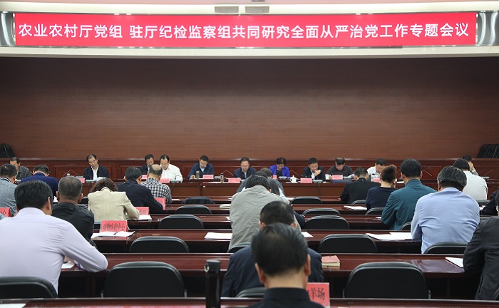 9月28日下午,农业农村厅党组联合驻厅纪检监察组召开专题会议,共同研究全面从严治党工作。会议通报了农业农村厅2020年上半年全面从严治党工作,听取了中央、自治区巡视反馈问题整改落实“回头看”及巡察发现问题整改落实工作情况汇报、意识形态工作情况汇报,驻厅纪检监察组通报了上半年执纪审查、监察调查情况,对农业农村厅党组全面从严治党工作提出意见。会议邀请自治区纪委监委第一监督检查室副主任张晓亮同志到会指导,农业农村厅党组书记、厅长王刚同志主持会议。