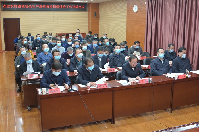 会议强调,要扎实做好重要农副产品保供和安全生产工作。一是认真落实“菜篮子”市长责任制。组织成立技术工作组,深入基层指导蔬菜生产和畜禽养殖,加强生产调度和价格监测,强化农产品调运和产销衔接,将“米袋子”“菜篮子”“肉案子”“奶瓶子”紧紧抓在手上,全力保障粮油、肉蛋奶、水产品等重要农副产品不紧缺、不脱销、不断档。联合有关部门集中开展农村假冒伪劣食品专项整治行动,确保农产品供应充足、市场稳定和农产品质量安全。二是切实加强农业安全生产管理。坚持预防为主、防患未然,把应对极端天气和突发情况作为重中之重,提前做好各种应急准备。加强农民用电、用煤、用气等安全教育,增强群众安全意识,提高防范能力。严格落实值班值守和领导带班制度,畅通信息渠道,及时掌握情况并按规定第一时间报告。三是继续打好村庄清洁行动春节战役。组织发动群众积极参与农村人居环境整治行动,及时清理农村生活垃圾、沟渠道边、畜禽粪污等农业生产废弃物,干干净净迎新年。