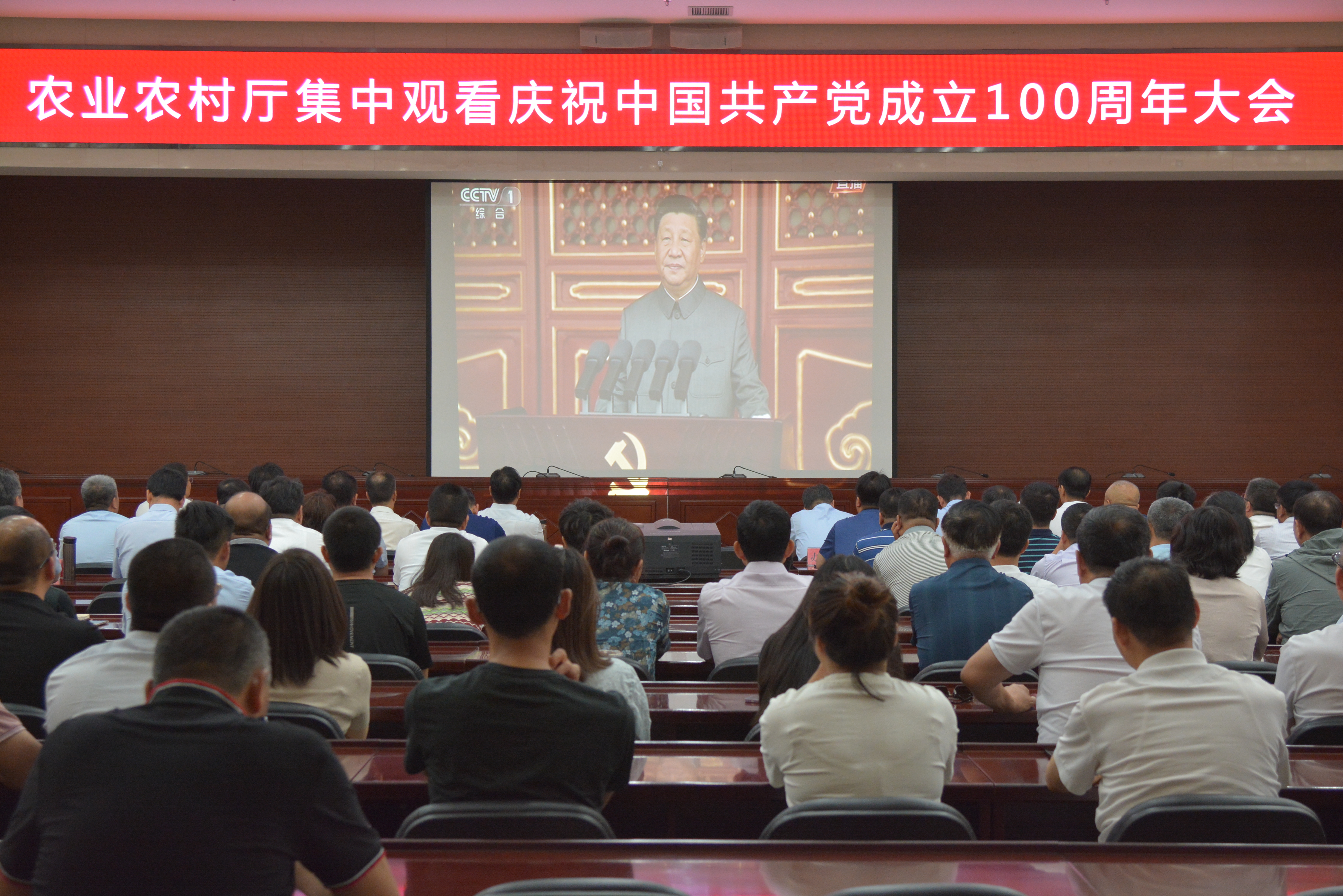 7月1日上午8时,庆祝中国共产党成立100周年大会在北京天安门广场隆重举行。自治区农业农村厅组织党员干部629人,认真收听收看了大会实况,聆听了习近平总书记重要讲话。其中主会场组织20个党组织134人在厅二楼多功能厅集中收看,分会场组织27个党组织495人分别在各自会议室集中收看。