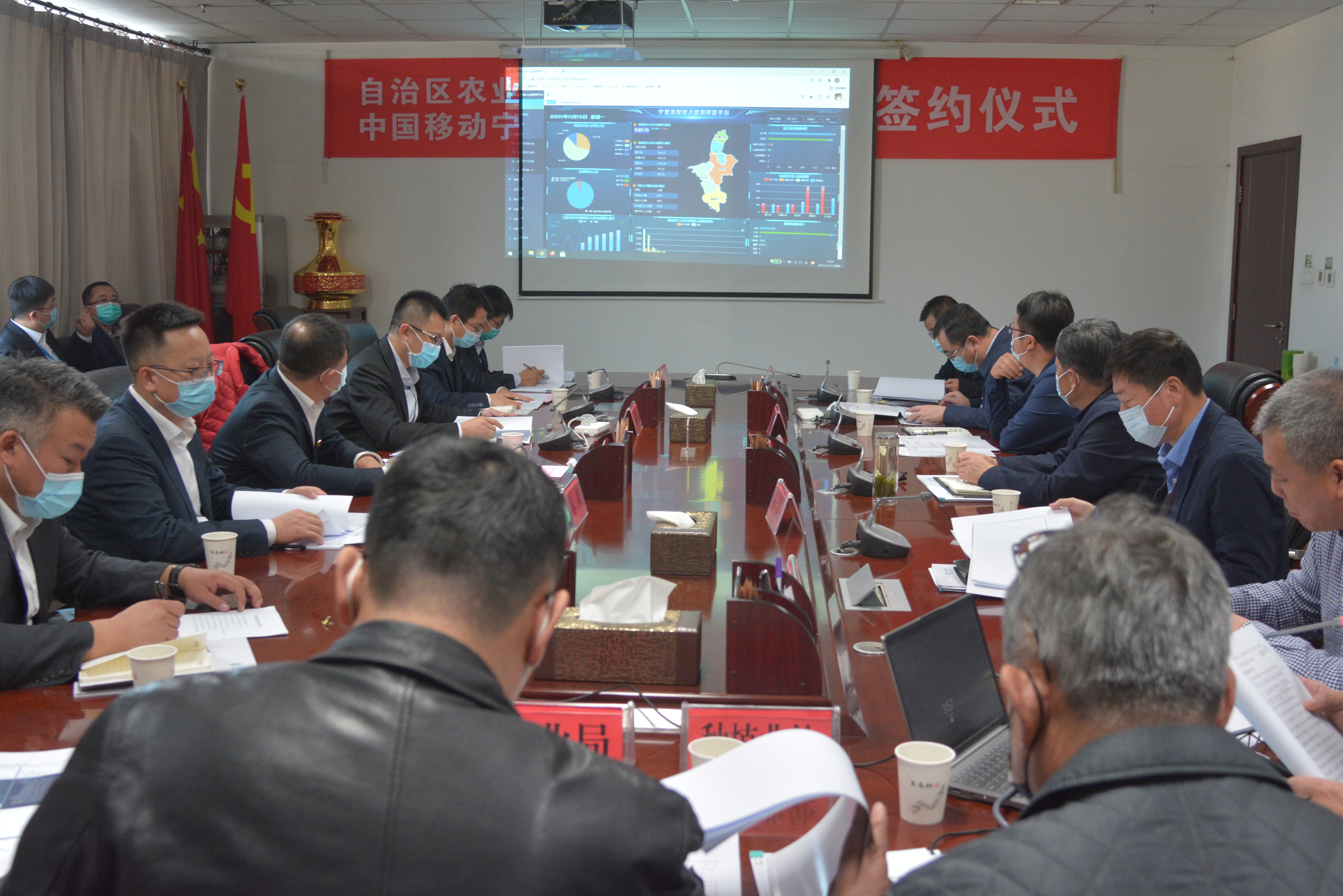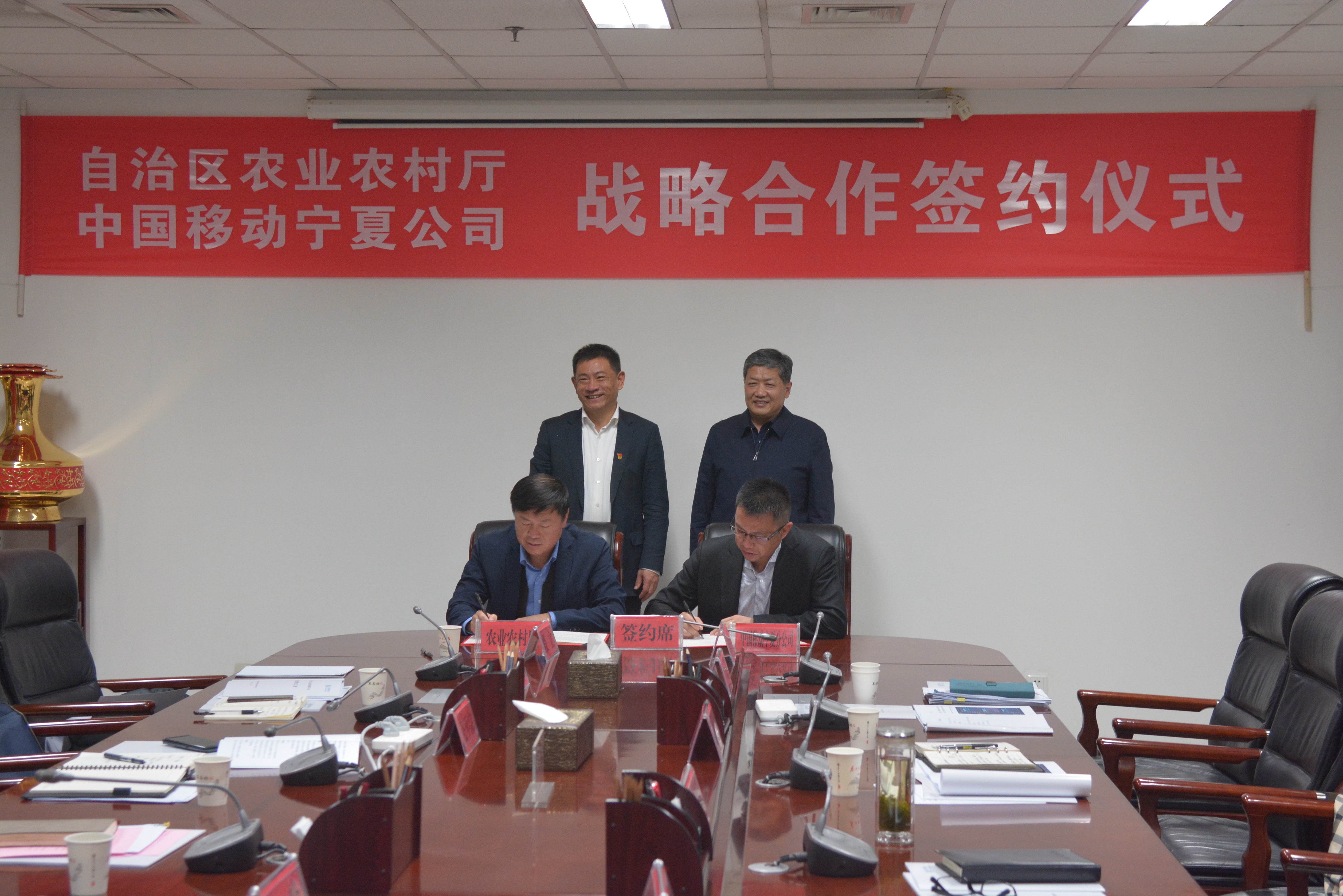 为全面提升自治区农业农村生产、经营、管理、服务等方面信息化水平的共同愿景,11月15日,自治区农业农村厅党组书记、厅长滑志敏及厅相关处室负责人与中国移动宁夏有限公司党委书记、董事长、总经理霍伟及公司相关部门负责人,在认真听取农业农村厅关于农村居民收入监测预警平台建设情况汇报后,经双方友好协商,自治区农业农村厅与中国移动宁夏有限公司签订了战略合作协议。