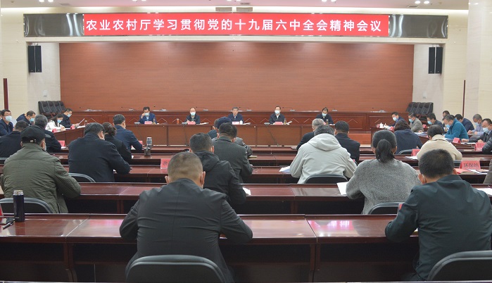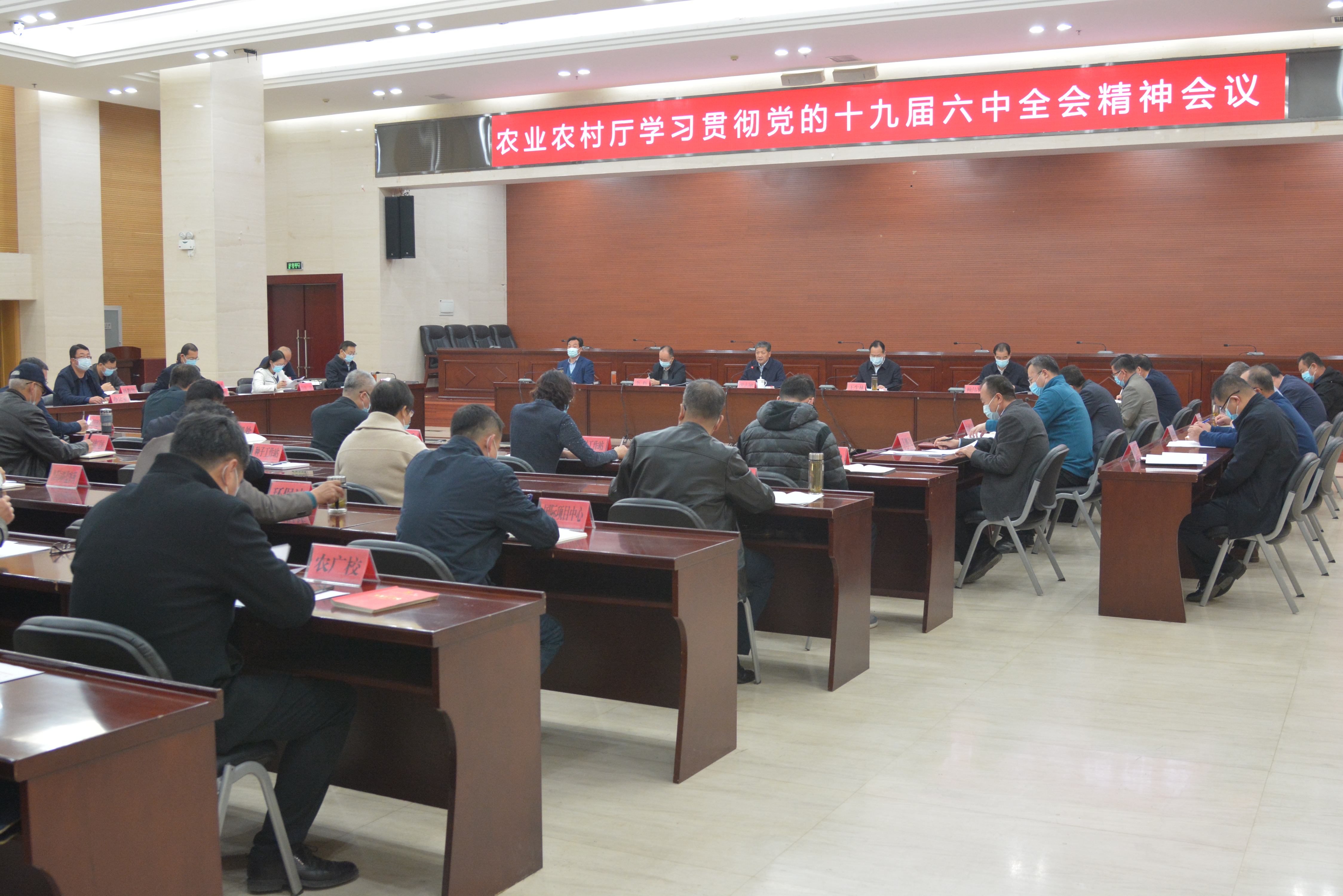 会议指出,十九届六中全会是在建党一百周年之际,在世纪疫情和百年变局交织的复杂背景下,又恰逢开局“十四五”、开启第二个百年奋斗新征程的重要节点召开的,具有重要里程碑意义。全会审议通过的《中共中央关于党的百年奋斗重大成就和历史经验的决议》,对党的百年奋斗历程进行全面系统总结,重点阐述党的十八大以来的原创性思想、变革性实践、突破性进展和标志性成果,从五个方面概括党百年奋斗的历史意义,用“十个坚持”凝练党百年奋斗的历史经验,同党的前两个历史决议既一脉相承又与时俱进,是一篇光辉的马克思主义纲领性文献。习近平总书记的重要讲话思想深邃、内涵丰富,具有很强的政治性、思想性、理论性、指导性。全厅各级党组织和广大党员干部要深入学习领会十九届六中全会精神实质,准确把握党的百年光辉历程、重大成就和历史经验,牢记中国共产党是什么、要干什么这个根本问题,更加坚定、更加自觉地践行初心使命,紧密联系“三农”实际,全面抓好贯彻落实。