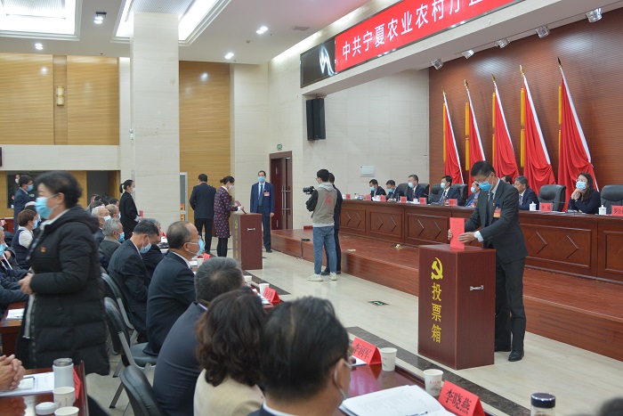 会议听取并审议通过了自治区农业农村厅机关党委工作报告、机关纪委工作报告以及党费收缴使用和管理情况的报告,表决通过《大会选举办法(草案)》以及总监票人名单,严格按照选举有关规定和程序,通过差额选举、无记名投票方式,选举产生了九名同志为自治区农业农村厅第一届机关党委委员,五名同志为自治区农业农村厅第一届机关纪委委员。随后召开了机关党委第一次全体会议,选举产生了机关党委书记、专职副书记;召开机关纪委第一次全体会议,选举产生了机关纪委书记。