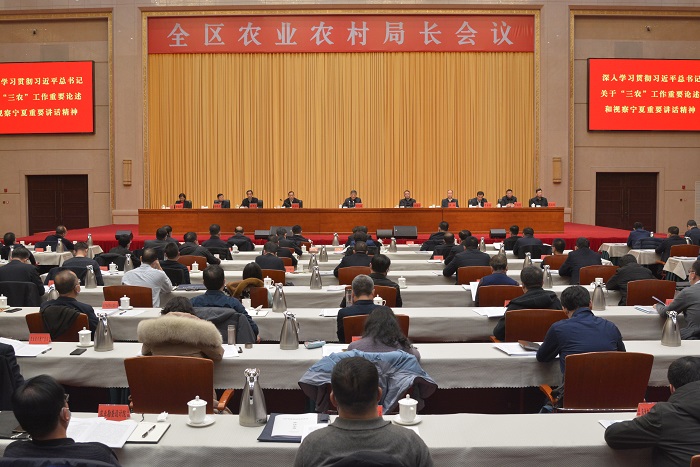 会议强调,今年要重点做好10个方面的工作。一要坚定不移抓好粮食生产。坚决稳定粮食播种面积,按照自治区下达的粮食生产目标任务,落实落细面积、作物、地块,最大限度挖掘撂荒地、间套作潜力,不折不扣落实粮食生产各项政策措施。努力扩大春小麦种植,大力推广春麦后复种“粮豆、粮油、粮饲、粮菜”等两熟技术模式,大力推广玉米大豆带状复合种植,因地制宜选配玉米大豆优良品种,协调做好农机改装配套,推动技术模式熟化。二要持续巩固脱贫攻坚成果。大力发展富民产业,因地制宜指导脱贫地区发展黄花菜、中蜂、小杂粮、红梅杏等一批县域富民特色产业,完善常态化监测帮扶机制,建立健全监测、帮扶、责任、考核“四项机制”,常态化开展防止返贫动态监测和帮扶工作。三要大力加强耕地保护建设。强化顶层设计引领,构建上下贯通、衔接一致的区市县三级高标准农田建设规划体系。严格耕地种植结构管控,持续推进高标准农田建设,加快发展高效节水农业,大力推进盐碱地治理。四要切实打牢种子农机基础。持续抓好种业振兴,大力实施种质资源保护利用、创新攻关、企业扶优、基地提升、市场净化五大行动。加快补齐农机装备短板,大力实施农业机械化转型升级工程,分产业分品种推进短板机具研发应用。五要加速推进重点产业发展。持续做大规模,坚持向规模要效益、要质量、要动力,枸杞产业巩固“一核两带”发展格局,扎实推进国家葡萄及葡萄酒产业开放发展综合试验区建设,大力推进奶牛标准化规模养殖,加快推动肉牛、滩羊“出户入场(园)”。持续做优品牌,坚持政府主打区域公用品牌,扶持企业做强企业品牌、产品品牌,加快创建“六盘山牛肉”“宁夏牛奶”等农产品地理标志品牌,支持企业创建一批知名企业品牌,培育一批农产品品牌。持续做强加工,大力培育市场主体,紧盯乳制品、牛羊肉、小杂粮、蔬菜等,提升精深加工能力。聚焦农业多种功能拓展、乡村多元价值开发,大力实施乡村休闲旅游精品工程,推动休闲农业转型升级。六要着力加快农业绿色发展。推进秸秆粪污“两利用”,加快推进秸秆肥料化、基料化、饲料化、原料化、能源化“五化”利用步伐,加快畜禽养殖废弃物资源化利用,鼓励畜禽粪污全部还田利用。推进化肥农药“两减量”、农用残膜和农药包装废弃物“两回收”、农产品质量安全和动物疫病防控“两提升”。七要扎实稳妥推进乡村振兴。坚持乡村建设为农民而建,乡村振兴为农民而兴,大力实施乡村建设行动,深入开展农村人居环境整治提升五年行动,持续开展村庄清洁提升行动,统筹推进农村生活污水和垃圾治理,加强乡村风貌引导,改善村庄公共环境。八要系统推进提升乡村治理水平。深入开展整省域乡村治理示范创建,统筹实施基层党组织建设能力提升等“七大行动”,巩固推广乡村治理示范创建试点经验,持续开展“一村一年一事”行动。九要系统集成推进农村改革。稳慎推进农村“三块地”改革,进一步完善土地流转规范管理服务体系,深入实施农业社会化综合服务提质增效工程,促进小农户和现代农业发展有机衔接,让农民更多分享产业增值收益。十要千方百计促进农民增收。聚焦“两个高于”目标,深入实施城乡居民收入提升行动,扩大经营性收入,增加工资性收入,挖掘财产性收入,稳定转移性收入。