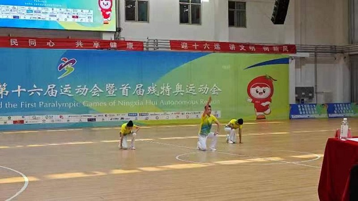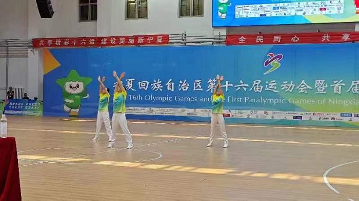 6月14日,宁夏回族自治区第十六届运动会群众组第九套广播体操三人团体赛预赛在沙坡头区全民健身中心展开,经过激烈角逐,在参赛的12支队伍中,自治区农业农村厅代表队精神饱满,动作整齐划一,勇夺第4名,顺利出线,进入决赛。 队员们将继续发扬顽强拼搏、超越自我,奋起直追、永不言弃的“三农”精神,力争在决赛中更进一步,勇夺前三。
