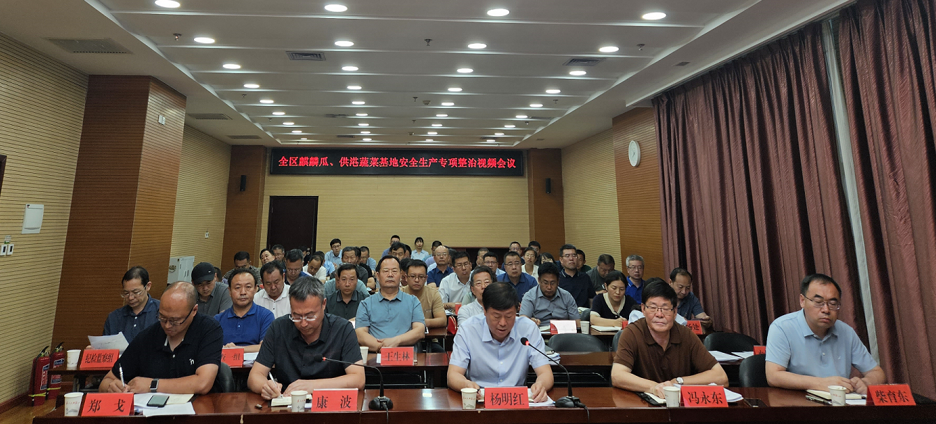 7月5日,自治区农业农村厅以视频会议形式组织召开全区供港蔬菜生产基地、麒麟瓜种植基地安全隐患专项排查整治专题会议。传达学习习近平总书记关于安全生产的重要论述、对防汛救灾工作作出的重要指示精神,以及自治区领导在《关于重点行业领域安全生产风险隐患专项督查情况的通报》上的批示精神、7月5日自治区党委常委会会议精神,安排部署全区供港蔬菜生产基地、麒麟瓜种植基地安全隐患专项排查整治工作。农业农村厅党组成员、副厅长杨明红主持会议,厅党组成员、总农艺师康波同志宣读了专项排查整治工作方案。各市、县(区)农业农村局主要负责同志、分管负责同志、相关内设机构负责同志,供港蔬菜生产基地、麒麟瓜种植基地企业负责人;厅机关各处(局、办)、厅属事业单位党政主要负责同志参加会议。
