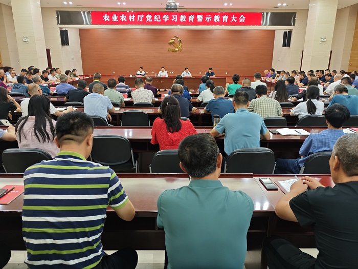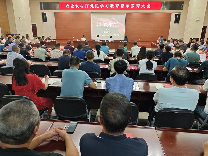 7月16日,自治区农业农村厅召开党纪学习教育警示教育大会,集体学习了习近平总书记关于全面加强党的纪律建设的重要论述,观看了警示教育专题片《永远在路上》,通报了农业农村厅系统3起违纪违法典型案例,深化以案说纪、以案说法、以案说责,对进一步推进党纪学习教育进行安排部署。自治区农业农村厅党组书记、厅长,乡村振兴局局长,党委农办主任王建主持会议并讲话。
