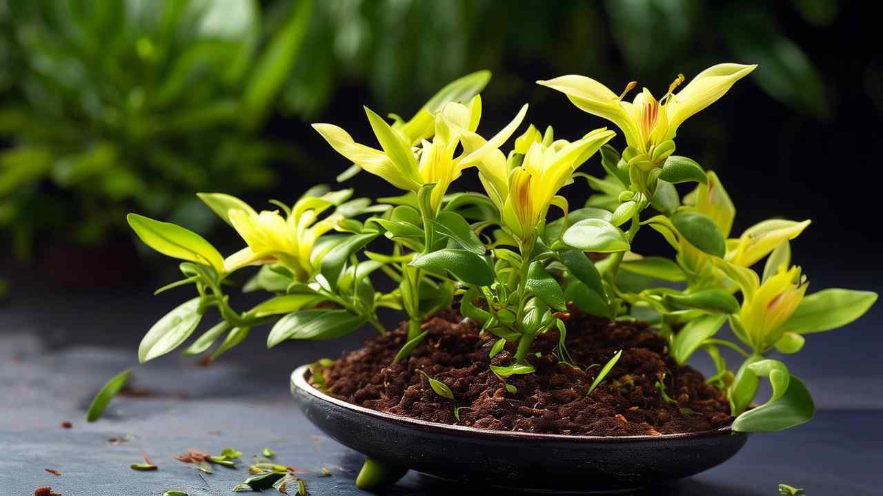 定期施肥也是石斛盆景养护的关键。石斛在生长期需要充足的营养,可以选择有机肥或者矿质肥适量施用,每个月施一次左右,以保证植物生长所需的养分。